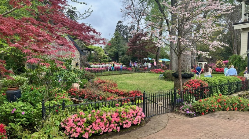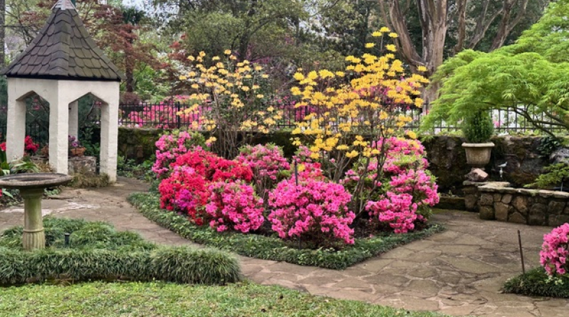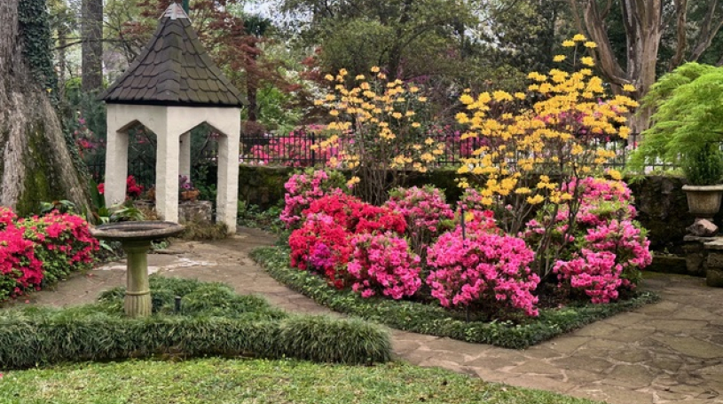 On Saturday, March 29, 21 members participated in the Azalea Trails Drive to Tyler, Texas to see the beautiful azaleas along a well-marked route in Tyler. Although the skies were cloudy at 9am at the QT in Greenville where everyone gathered, the weather did not disappoint. The day turned out to be beautiful and perfect for the drive. After making a stop at the railroad depot in Mineola, TX to see the museum there and watch the Amtrak train arrive and depart, the 9 Mercedes traveled on to Tyler where, at 11:30am, we gathered at the historical Goodman-LeGrand mansion to distribute brochures and maps of the trails through the city. Each Mercedes then went on the trails at its own pace to tour the beautiful gardens and streets lined with azaleas, although while there some stayed behind to first tour the mansion which was a beautiful exhibit of life in the Victorian years. Pyron Gardens on Dobbs Street in Tyler was an exceptional place to see many different colors and types of azaleas. Many of the residential streets on the tour had homes of all sizes and styles displaying more beautiful azaleas. At 1:30pm, 19 members met again to enjoy lunch at The Jalapeño Tree for great Mexican food and lots of visiting and fellowship. Following the lunch, everyone went their separate ways to return to the Dallas area.